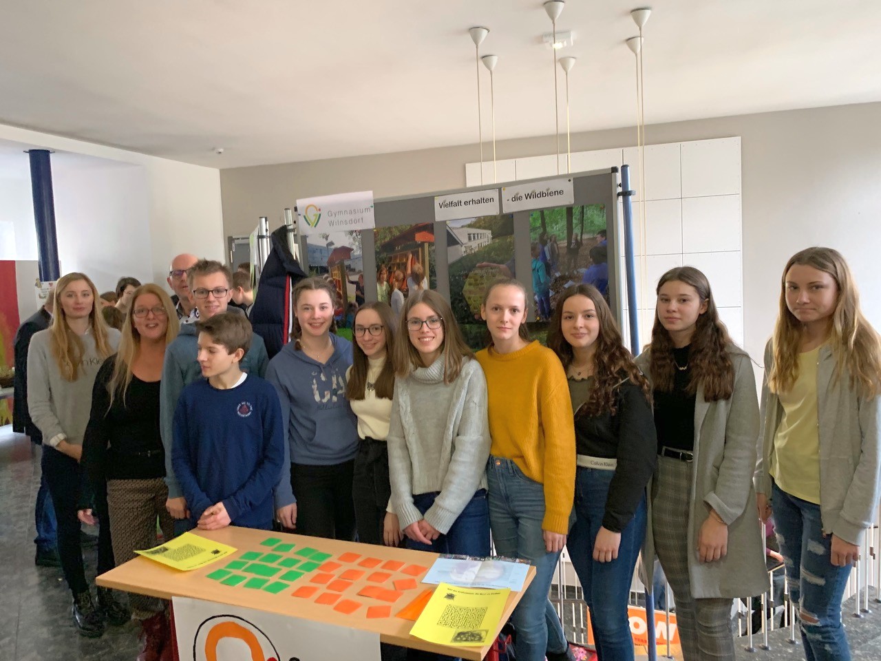 Möglich wurde dieses Projekt vor allem auch durch die Unterstützung der Gemeinde Wilnsdorf, die als Kooperationspartner Wege eröffnet, Wünsche erfüllt, Geräte bereitgestellt und zudem noch tatkräftig selbst mit angepackt hat. Helmut Eich als erster Beigeordneter und Leiter des Schulamtes sowie Mareike Oertel als Klimaschutzmanagerin haben daher stellvertretend der Auszeichnungsfeier beigewohnt und sind stolz auf „Ihr“ Gymnasium.