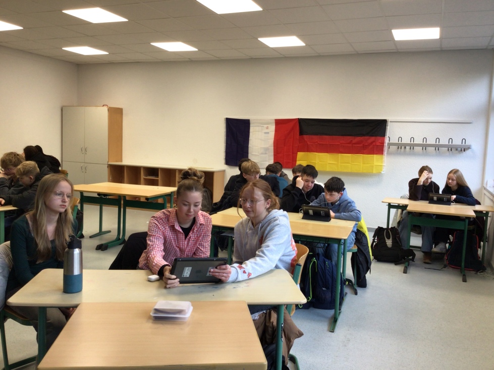 Die Teilnehmerinnen und Teilnehmer nutzten die IPads der Schule, um Aufgaben zu lösen, Strategien zu entwickeln und Ergebnisse zeitnah zu teilen. Dazu schauten sie sich kurze Videos an, lasen unterschiedliche Texte, hörten Musik…- nicht immer leicht (gerade für die Anfängerklassen), aber auch hier konnte durch die Zusammenarbeit Lösungen gefunden werden.