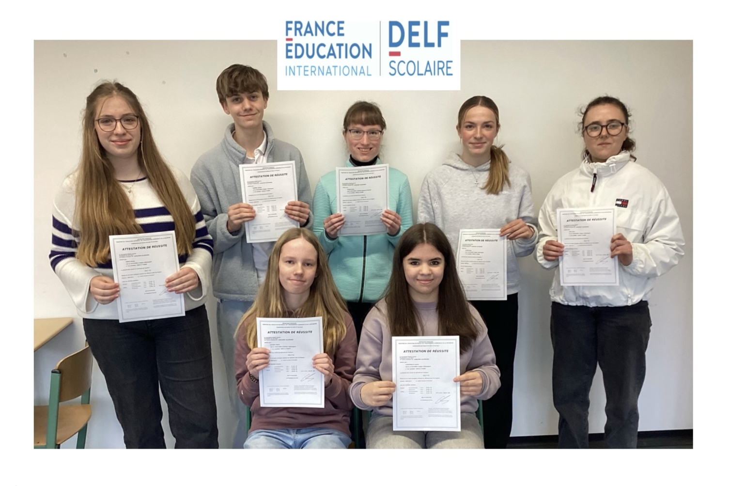 Einer zusätzlichen Herausforderung im Fach Französisch stellten sich im ersten Halbjahr sieben Schülerinnen und Schüler der Jahrgangsstufen 10 und 11. Sie meldeten sich beim Institut français zur Sprachdiplomprüfung auf dem Niveau B1 an. Nach einigen Stunden Training in der DELF-AG absolvierten sie im Januar und Februar eine schriftliche und eine mündliche Prüfung in den vier Kompetenzbereichen Lesen, Hören, Schreiben und Sprechen. Alle Teilnehmer-und Teilnehmerinnen bestanden mit guten Ergebnissen.