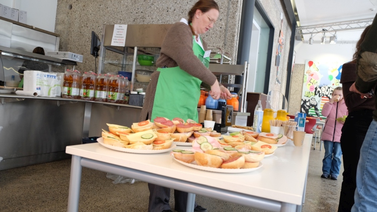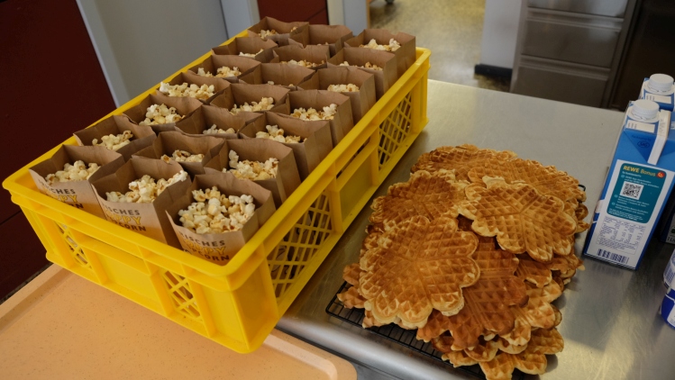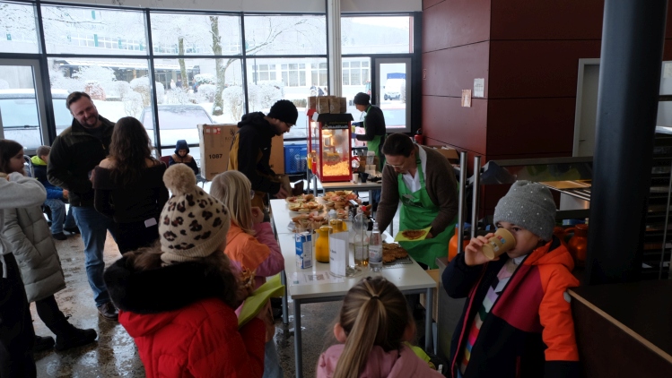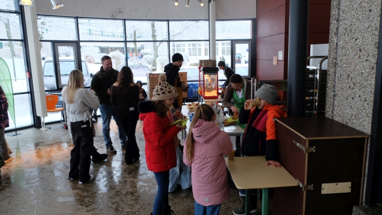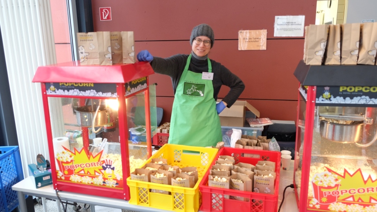 In der Cafeteria hatte wie in jedem Jahr unser Förderverein einen Popcorn- und Waffelstand sowie eine Tafel mit belegten Brötchen aufgebaut. Bei frischem Popcorn-, Waffel- und Kaffeeduft konnte man sich hier aufwärmen und ins Gespräch kommen.
