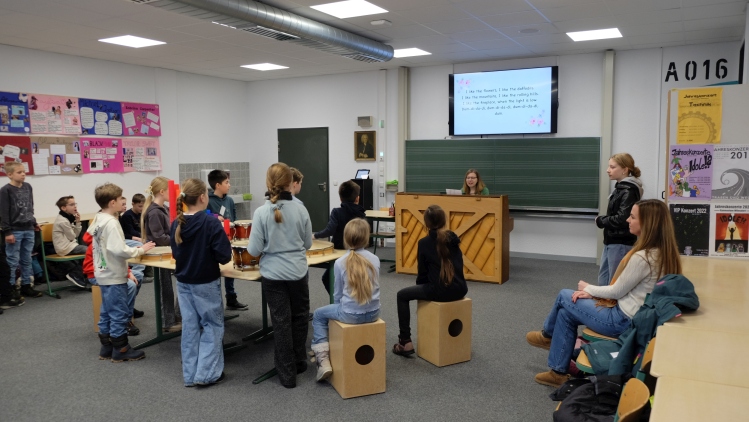 Die über 130 Besucherkinder sprengten mit ihren Eltern beinahe die Kapazität unseres Forums. Über den gesamten Schulkomplex hatten die Lehrerinnen und Lehrer mit ihren Schülergruppen zahlreiche Stationen aufgebaut, um den Besucherkindern und deren Eltern das Fächerangebot sowie das außerunterrichtliche Angebot vorzustellen.