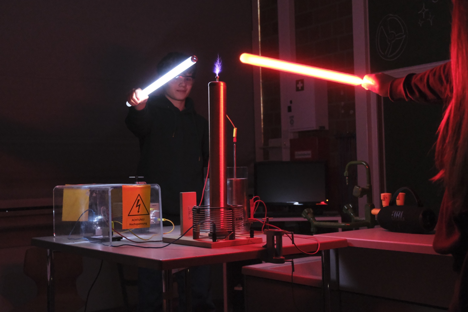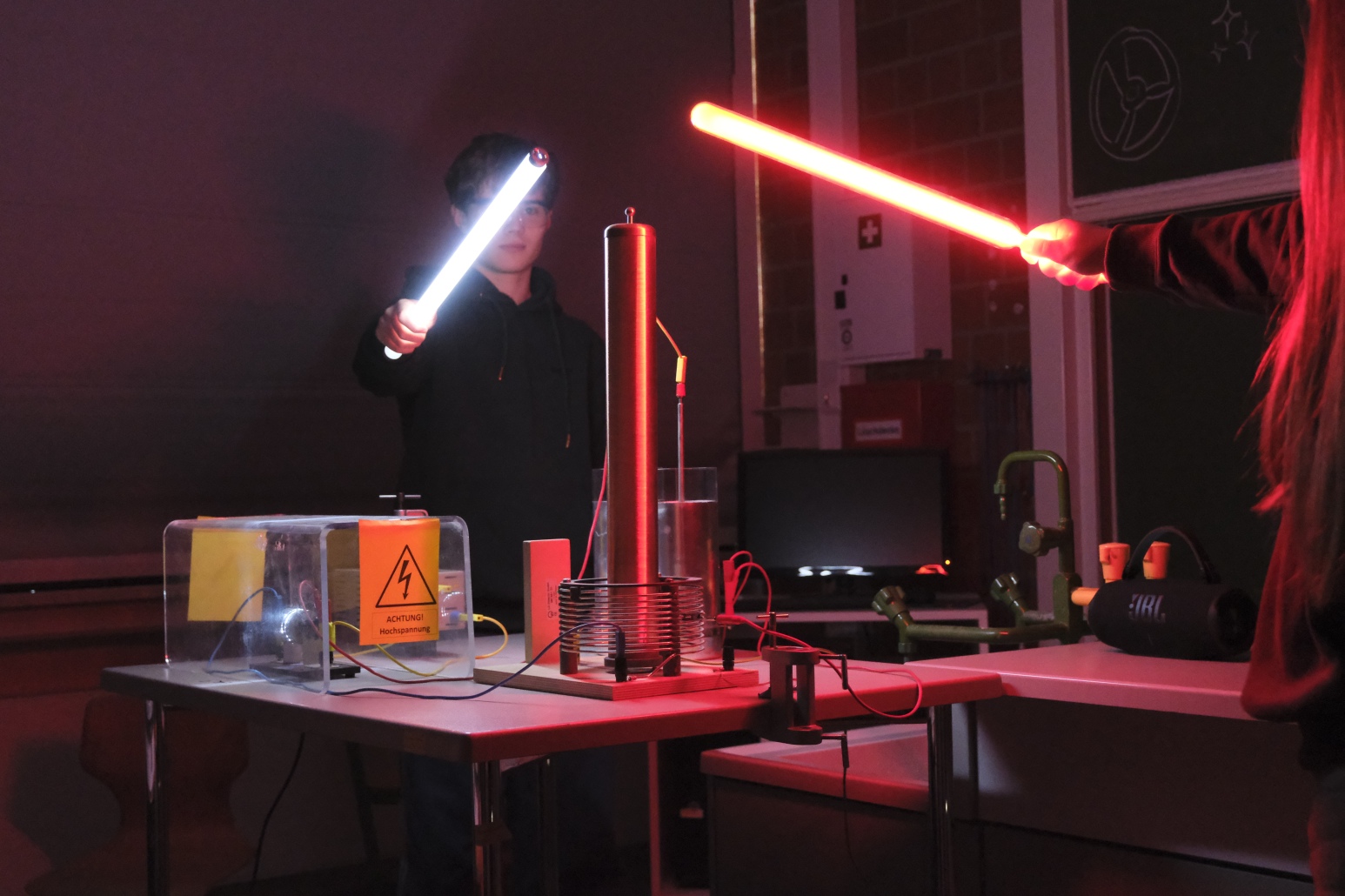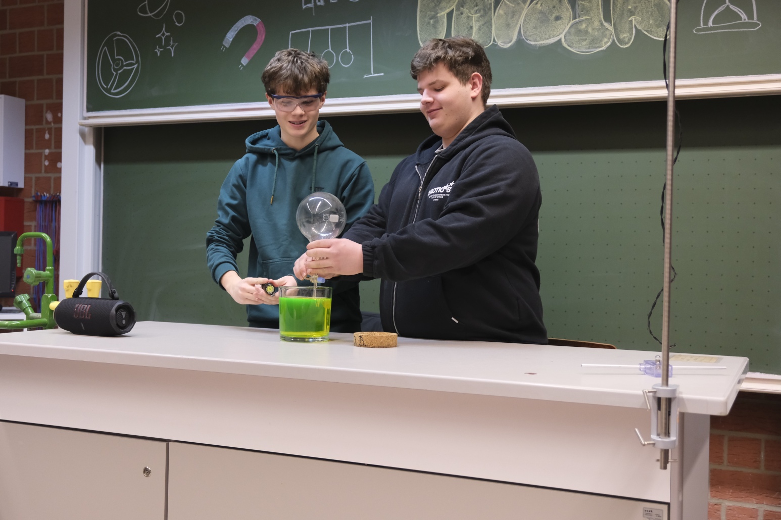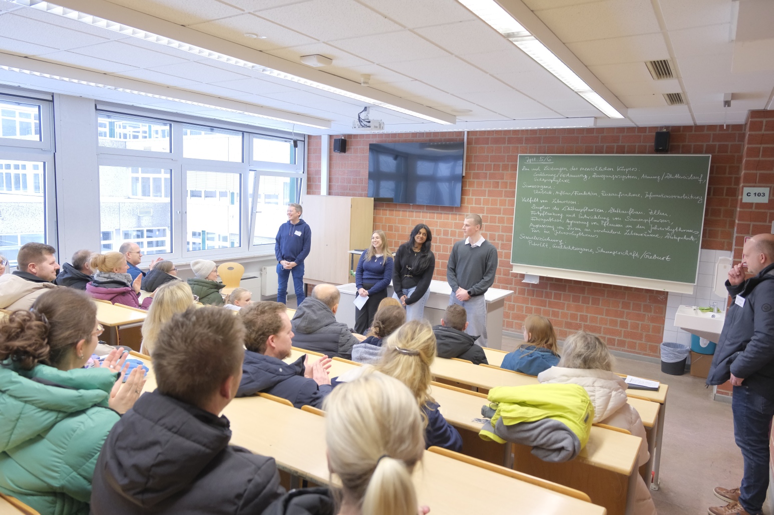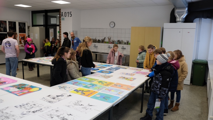 Diese Stationen umfassten das Sportangebot in der Dreifachhalle, die künstlerischen Darbietungen der Fächer Kunst und Musik im A-Gebäude sowie die Probenarbeit des GyWi-Theaters in unserer Aula. Die Naturwissenschaften und Informatik weckten im C-Gebäude mit ihren Shows und interaktiven Spielen das Interesse der Besuchergruppen.