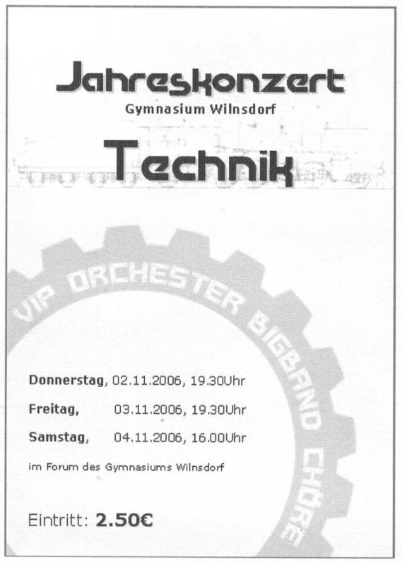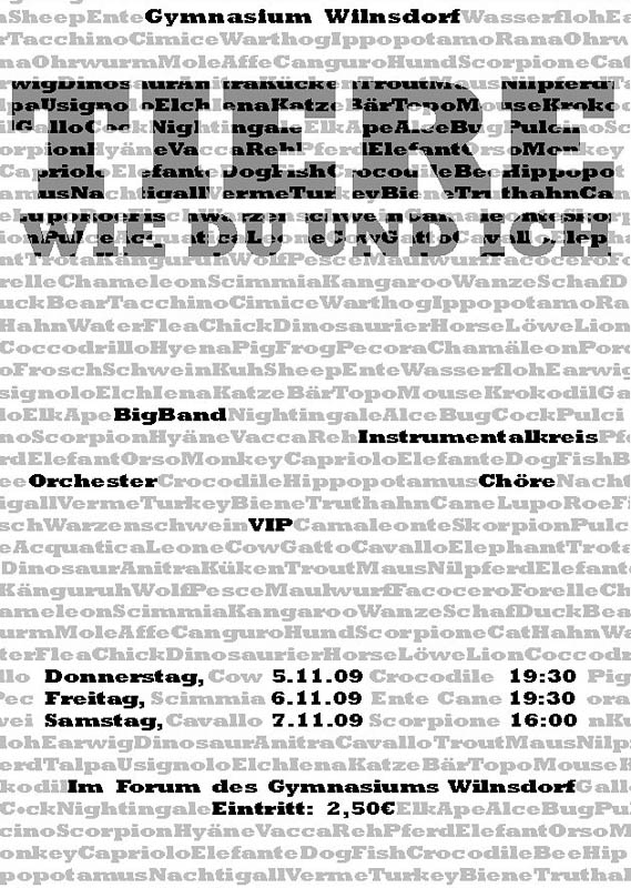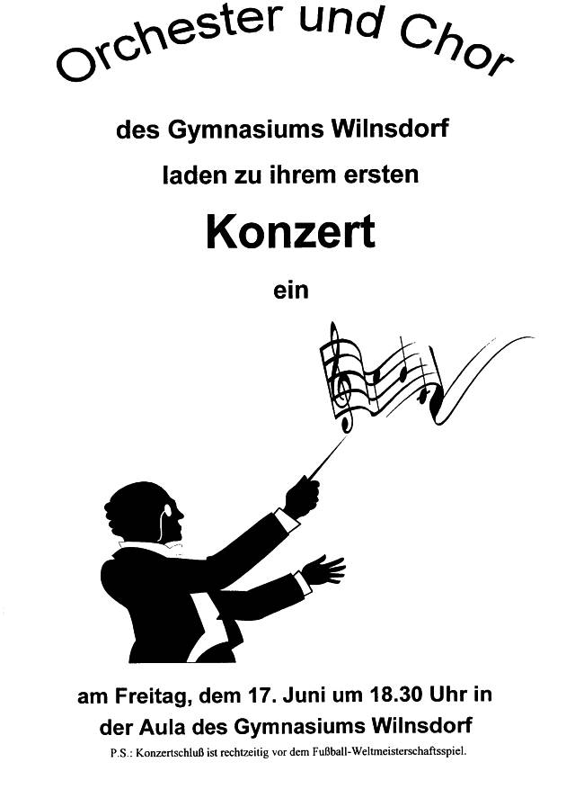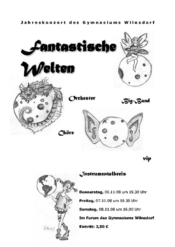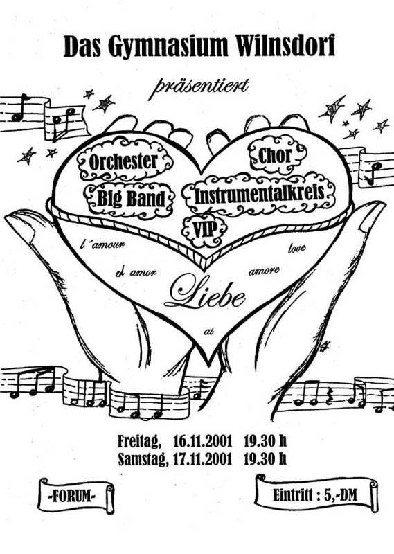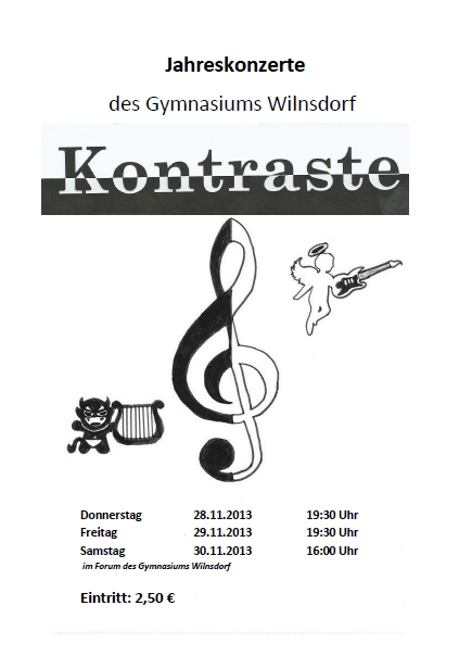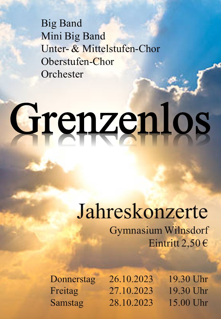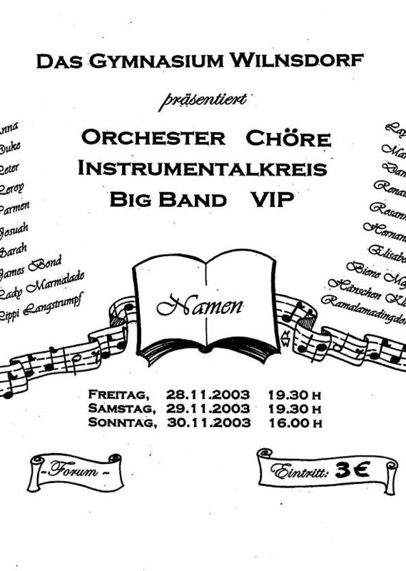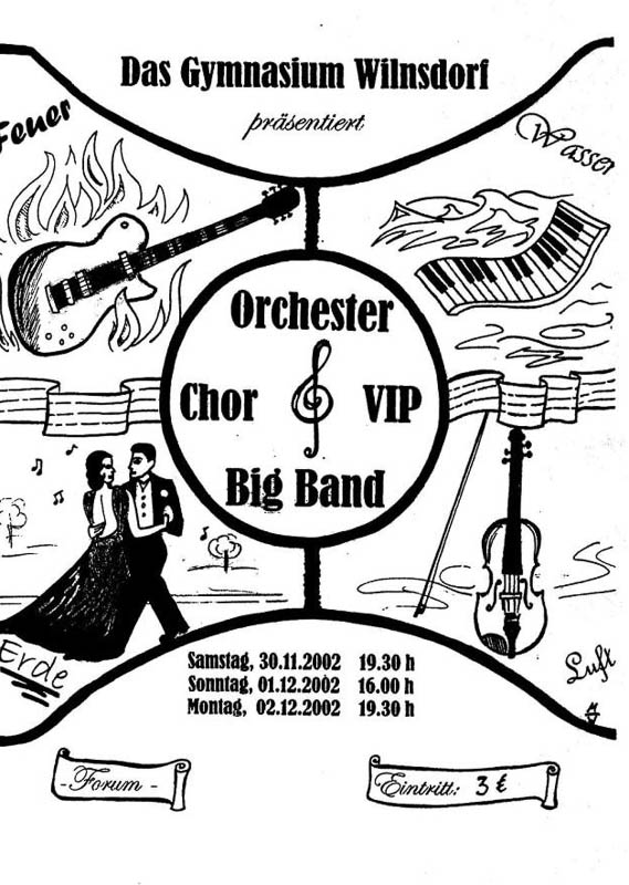 Die unter einem Motto stehenden Musikstücke aus Klassik, Filmmusik sowie Rock und Pop werden von allen AGs gemeinsam mit dem VIP-Kurs im großen Forum unserer Schule dem Publikum präsentiert. Am Schluss dieser intensiven und emotionalen Konzerte versammeln sich alle Mitwirkenden auf der Bühne, um mit einem letzten Stück das Konzert gemeinsam zu beenden.