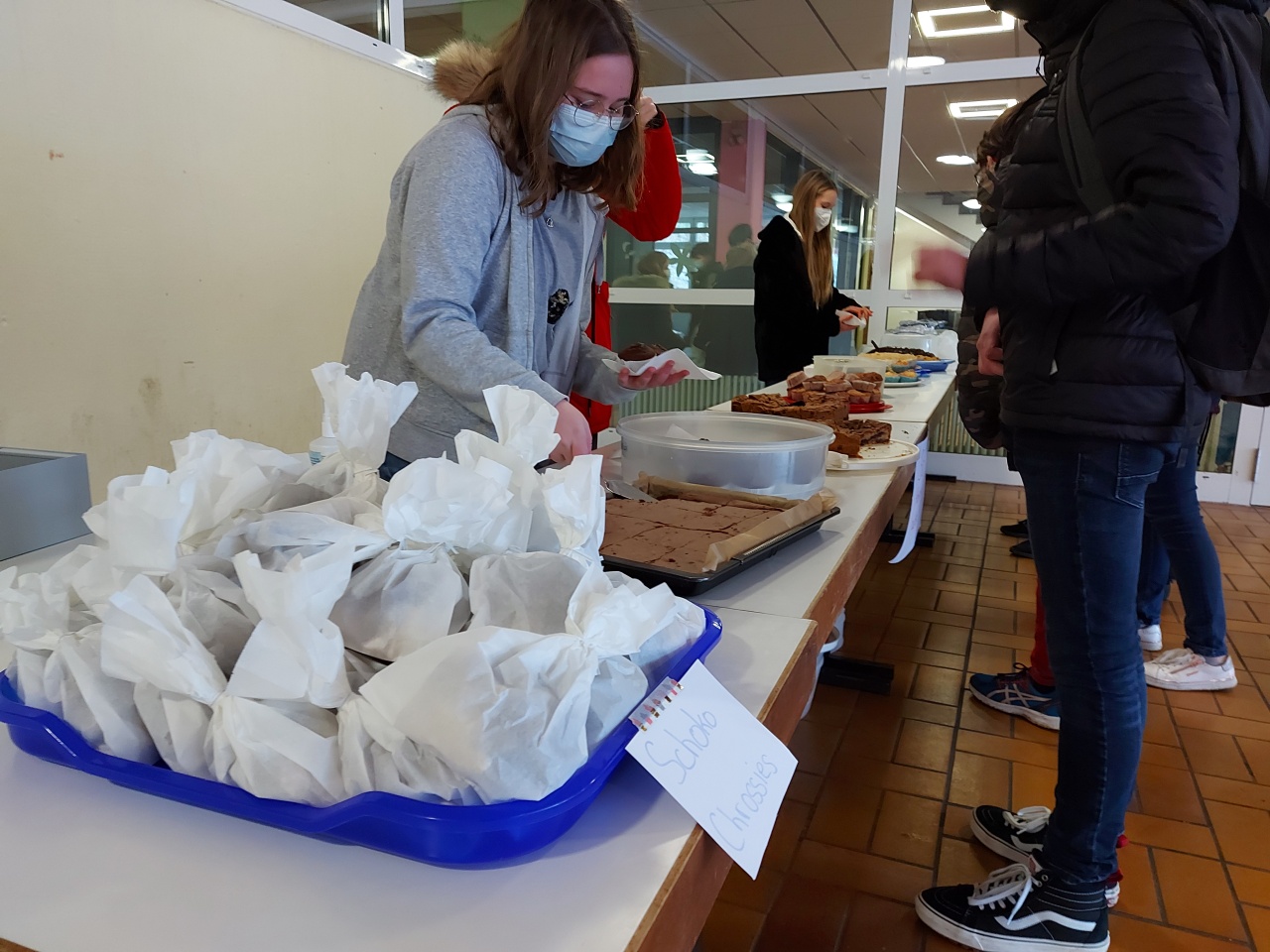 Unter diesem Motto stand die Spendenaktion des Evangelischen Religionskurses der 7b. Am 20.01.2022 verkauften die Schülerinnen und Schüler in der ersten großen Pause Kuchen, Muffins und andere Leckereien, die sie am Vortag zu Hause zubereitet hatten. Und das mit Erfolg: Die Pausenzeit war noch nicht vorüber, als das letzte Kuchenstück verkauft wurde.
