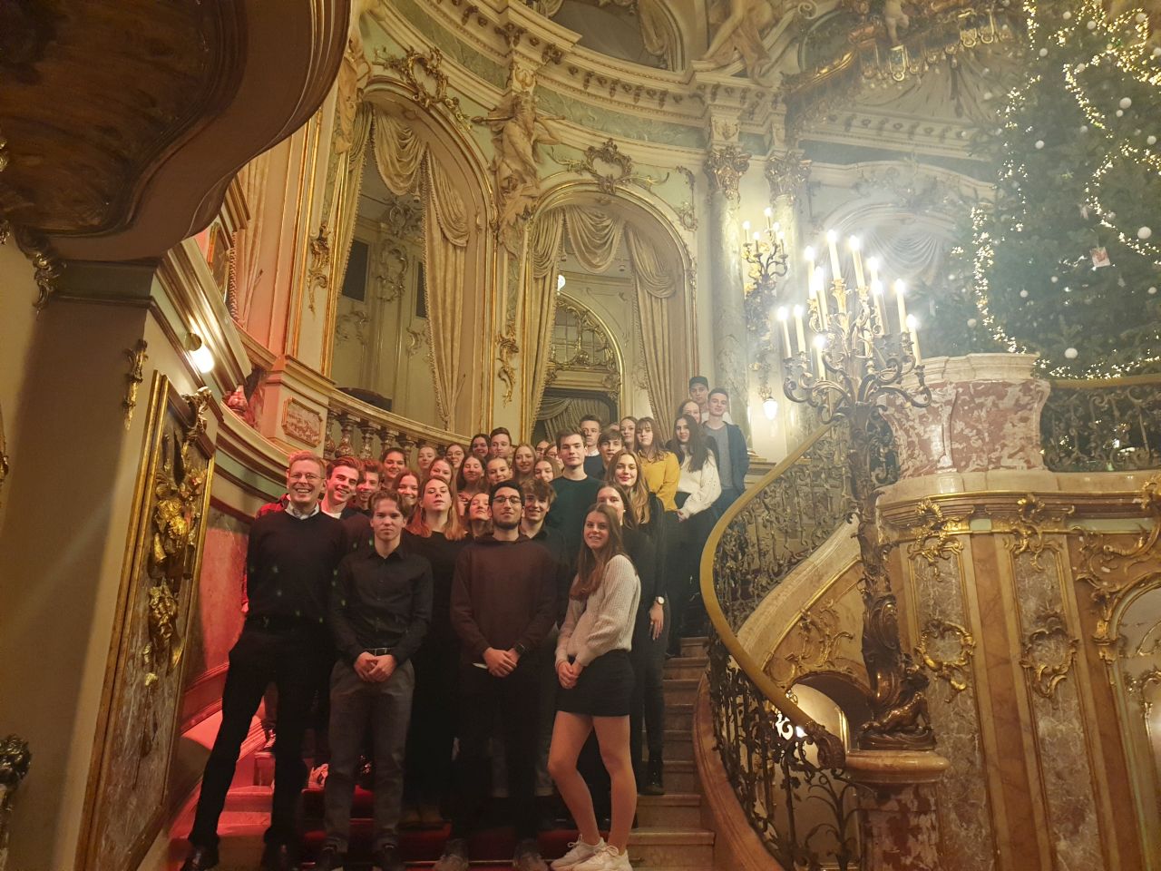 Leider sollte das prunkvolle Foyer aufgrund einer internen Veranstaltung an diesem Abend geschlossen bleiben. Ein großer Schock für alle Beteiligten. Durch die Überzeugungskraft einer der beiden Lehrkräfte, durften die Schülerinnen und Schüler das Foyer in der Pause allerdings dann exklusiv besuchen und sich an dem Prunk und der Schönheit dieses Ortes ergötzen. So wurden sämtliche Erwartungen übertroffen.