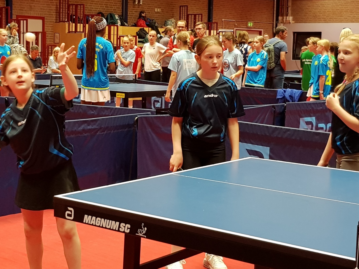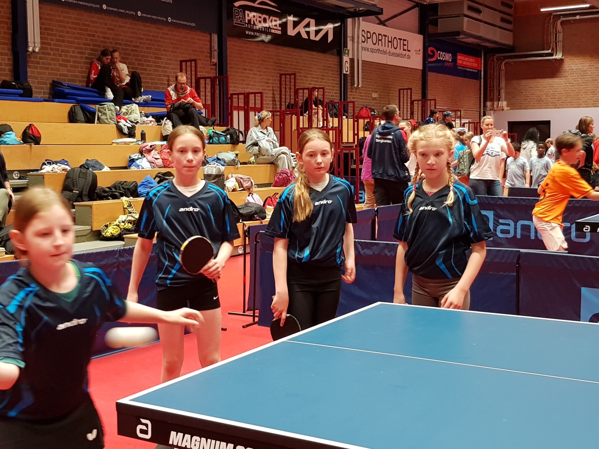 Nachdem sich letztes Jahr keine Mannschaft für den Landesentscheid Milchcup (Rundlaufturnier) qualifiziert hatte, war es dieses Jahr wieder soweit: die Mädchen der Klasse 5a (Emma Jung, Isa Fuchs, Marie Büdenbender, Marlene König, Judith Schneider) traten den Weg nach Düsseldorf ins Zentrum des DTTB (Stützpunkt mit Internat) an.