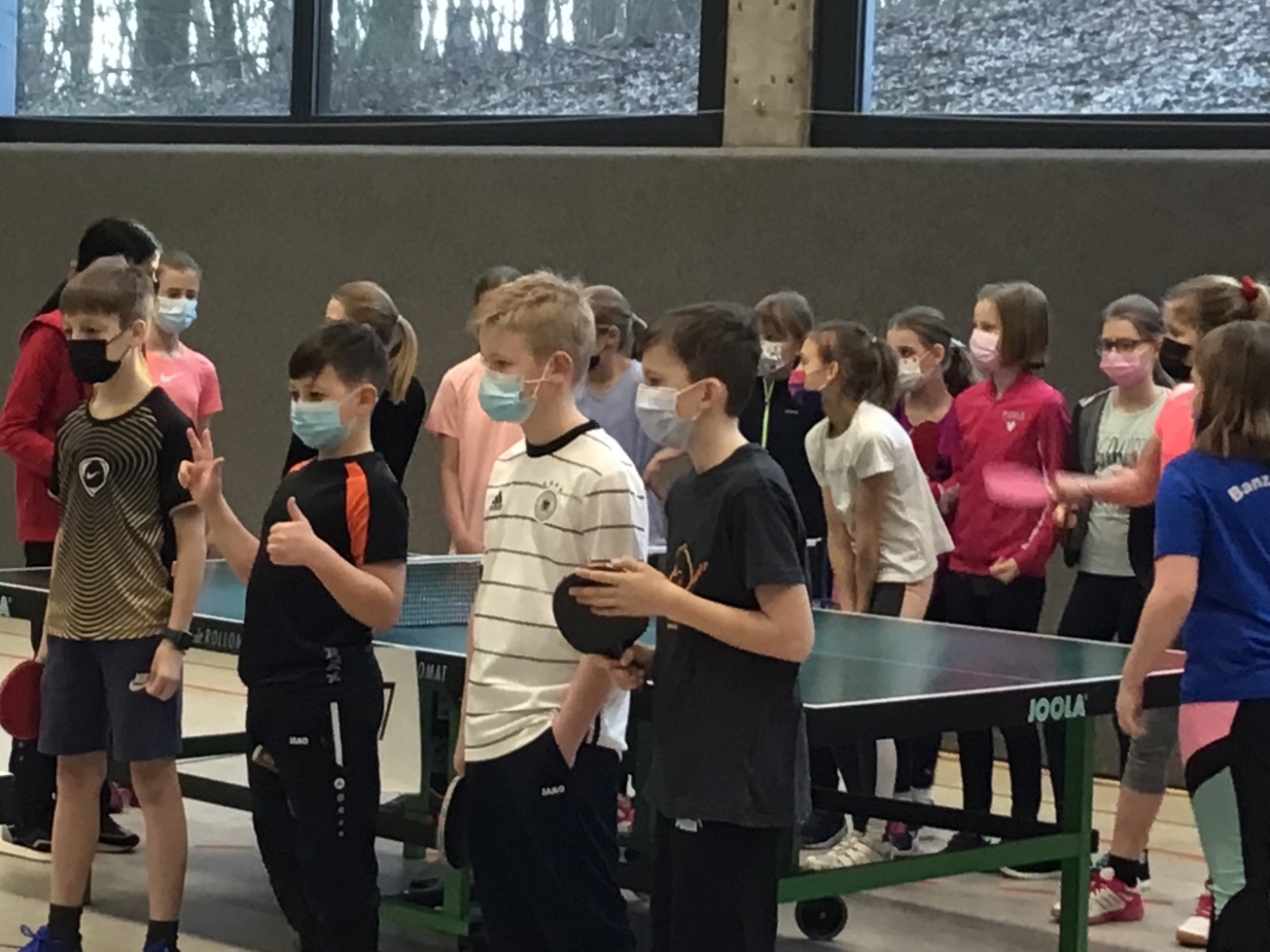 Nachdem alle 75 teilnehmenden Kinder (negativ) getestet waren, haben sich die Klassensieger der Klassen 5 und 6 mit den anderen Gewinnerteams der eigenen Jahrgangstufe gemessen. Es gab spannende und faire Kämpfe– aber auch der Ehrgeiz machte sich in einigen Spielen bemerkbar, denn es ging ja auch um die Qualifizierung für den Bezirksentscheid.