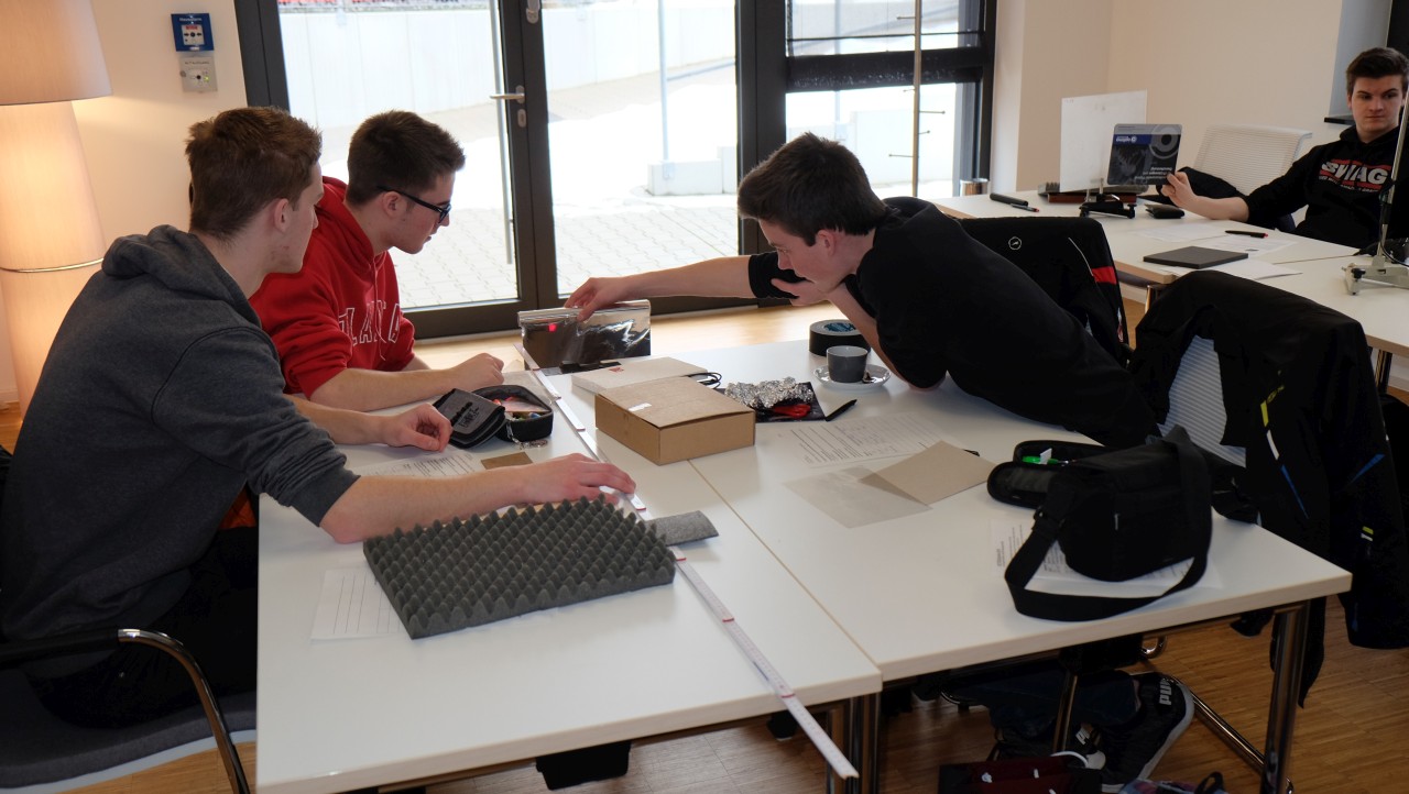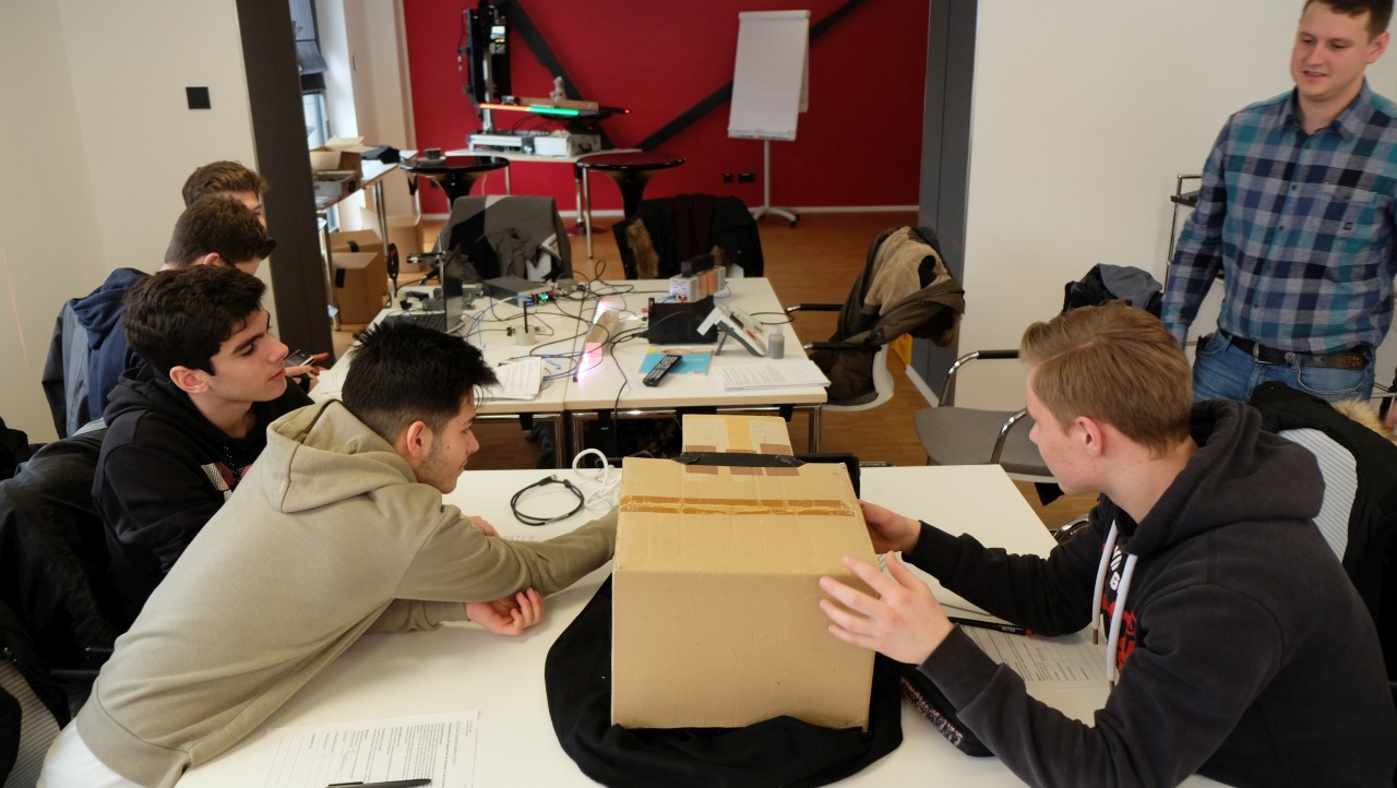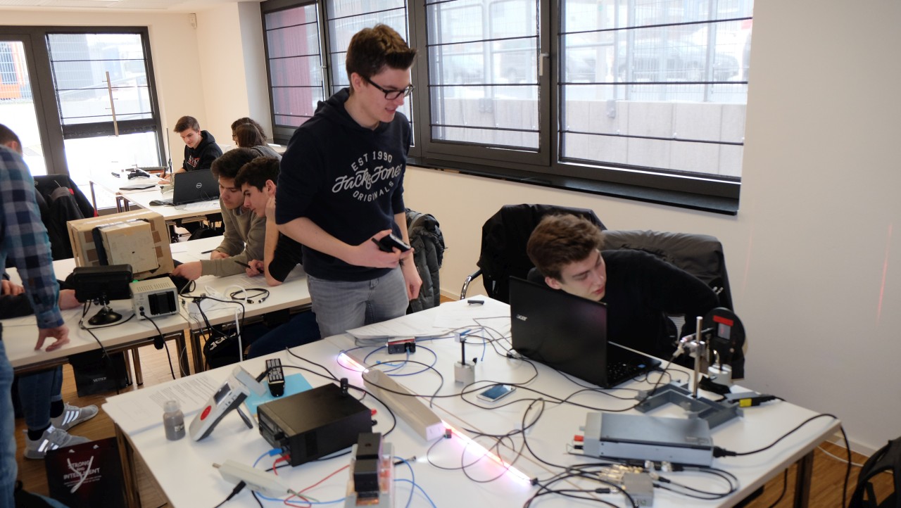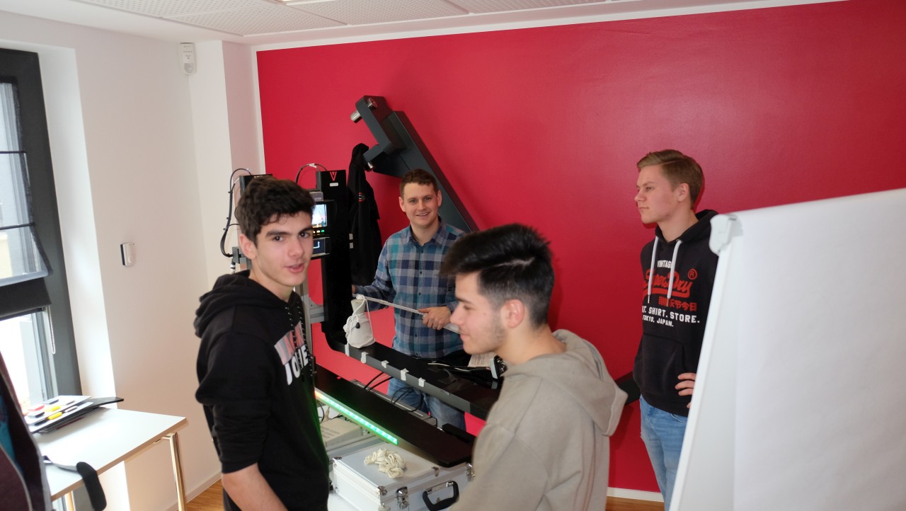Diese Exkursion ist ein Teil der seit 2018 bestehenden Kooperation mit der Firma Vetter, die als Partner unseres Gymnasiums die Entwicklung und Ausstattung des GyWi-MINT-Labors unterstützt hat. Das MINT-Labor ist hierbei nicht nur auf den Standort Schule beschränkt, es besteht vielmehr aus einem schulischen GyWi-Labormodul und dem MINT-Vetter-Labor in Burbach. So warteten bei der Firma Vetter gleich mehrere Herausforderungen auf unseren Besuchertrupp. Nach einem anfänglichen Betriebsrundgang, bei dem die Gruppe einen genauen Einblick in die den Produktionsablauf begleitenden Verfahrens- und Messtechniken bekam, konnten die Schülerinnen und Schüler in der Wissenswerkstatt und im Labor der Qualitätskontrolle eigene Verfahrenstechniken und Messungen durchführen. Hierfür hatten Herr Rothenpieler und sein Team im Labor der Qualitätskontrolle sowie Herr Tobias Weyl und Herr Benjamin Pfeiffer (ein ehemaliger Physikschüler des GyWis) in der Wissenswerkstatt interessante Experimente vorbereitet. Das  Highlight dieses Experimentierworkshops waren die Experimente an der VETTER-SmartFork®, einer intelligenten Gabelzinke, mit ihrer vielfätigen Sensorik als ein Beispiel für die Logistik 4.0.