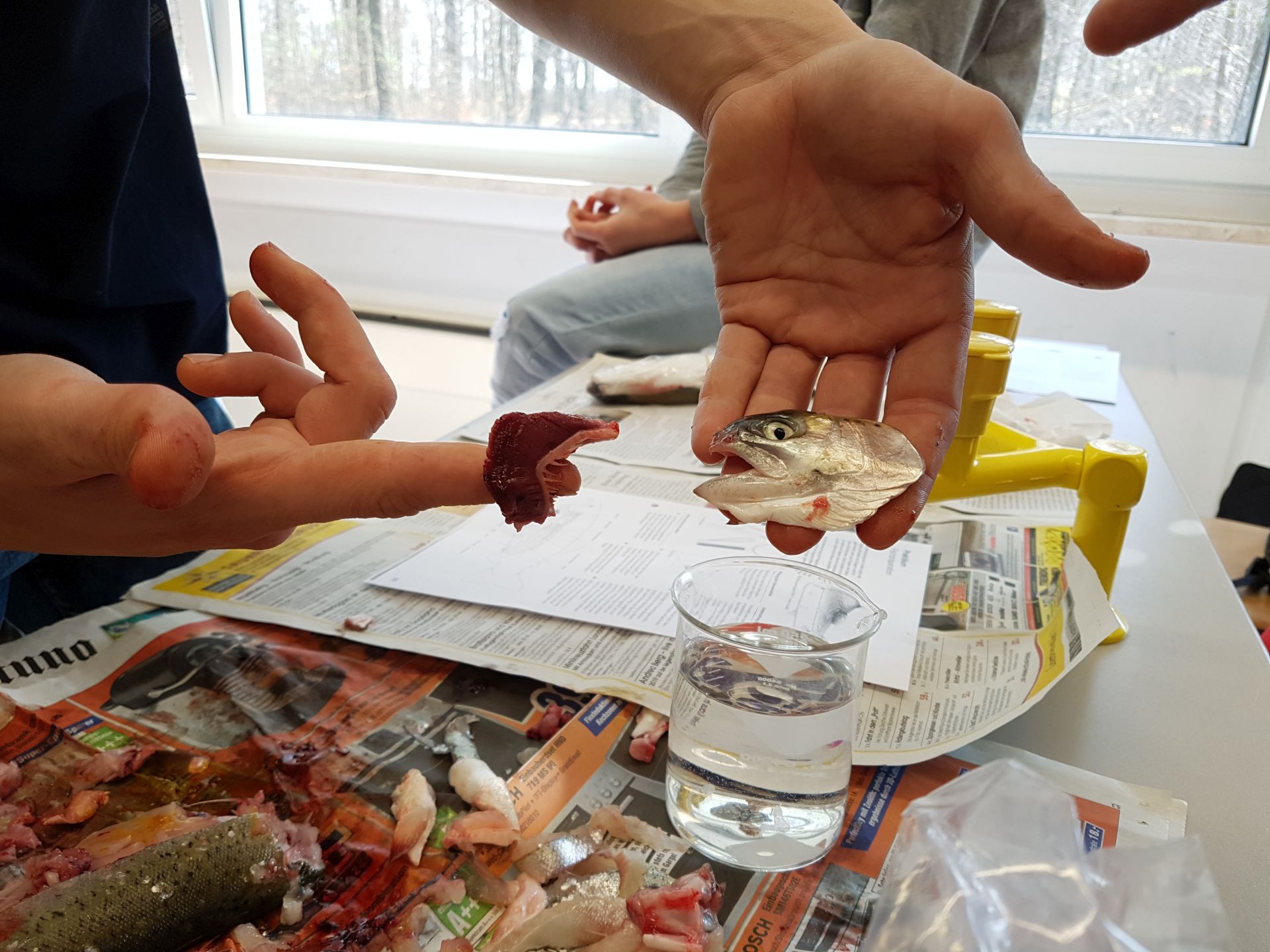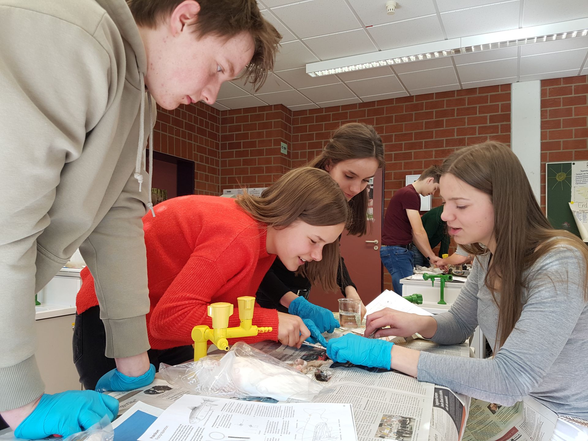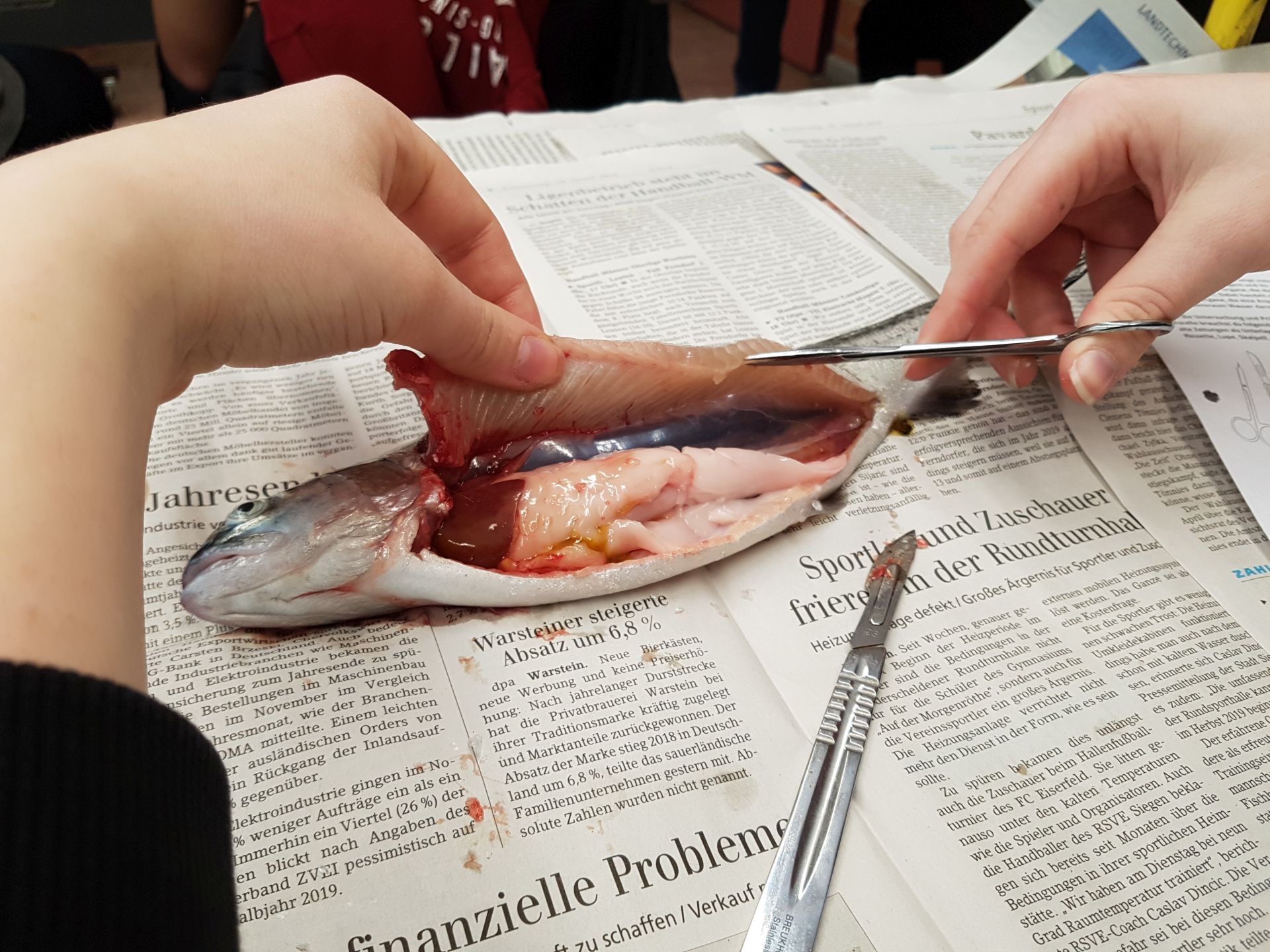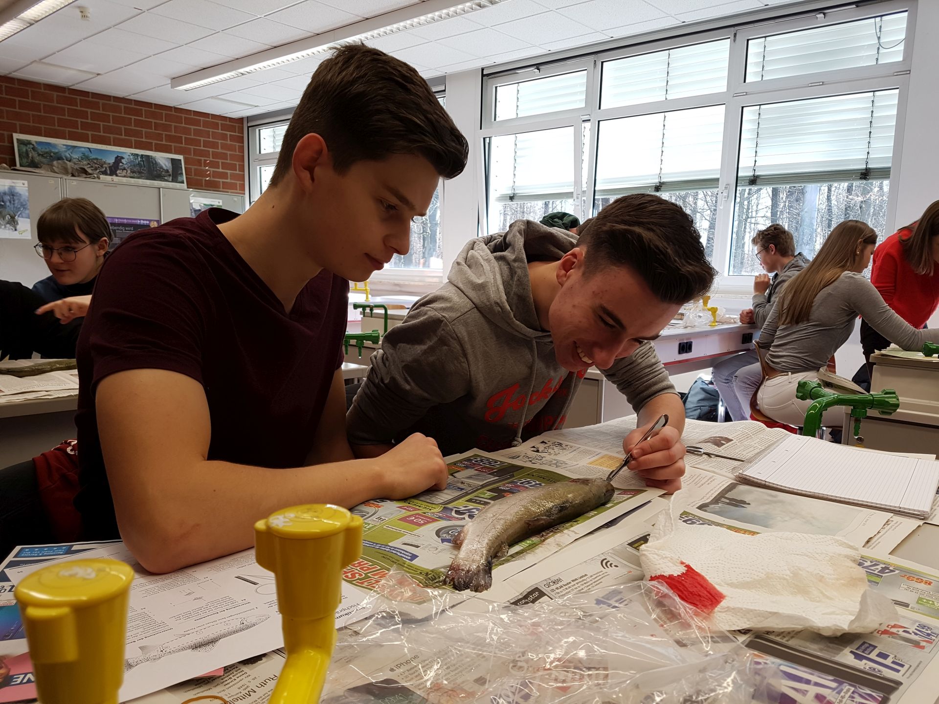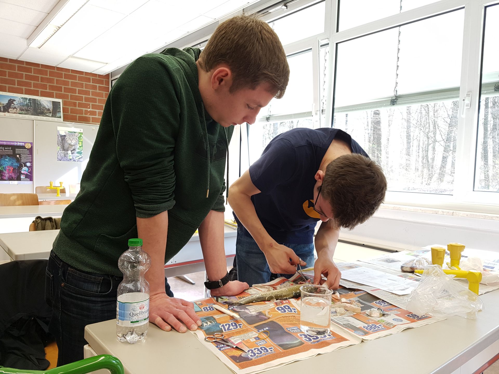 Der Biologie-Leistungskurs der Jahrgangsstufe 11 taucht in die Tiefen der Gewässerökologie ein! Mithilfe einer Präparation von Regenbogenforellen, welche durch Herrn Müller und Frau Beyer angeleitet wurde, gewinnen wir einen direkten Einblick in den Körperbau einer Forelle und die faszinierende Funktion ihrer Organe (z. B. Kiemen, Herz und Verdauungstrakt). Die Anpassung eines Fischs an das  Leben unter Wasser wird durch die eigene praktische Arbeit an diesem Beispielorganismus besonders deutlich. von Lara Will und Janina Schneider (Text) und Katja Beyer (Fotos)