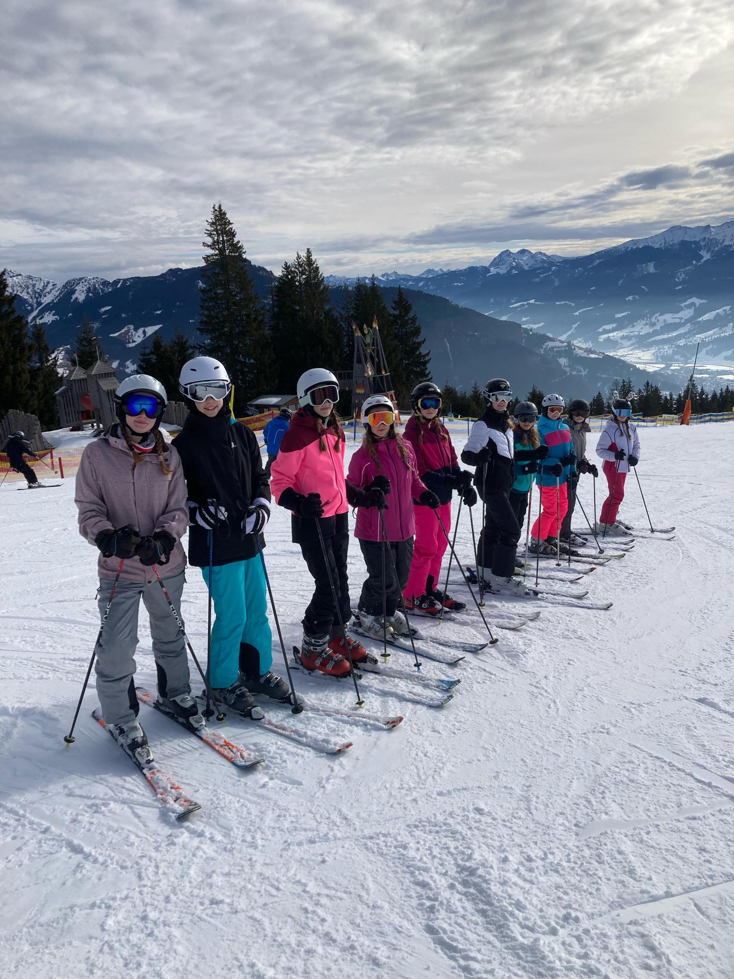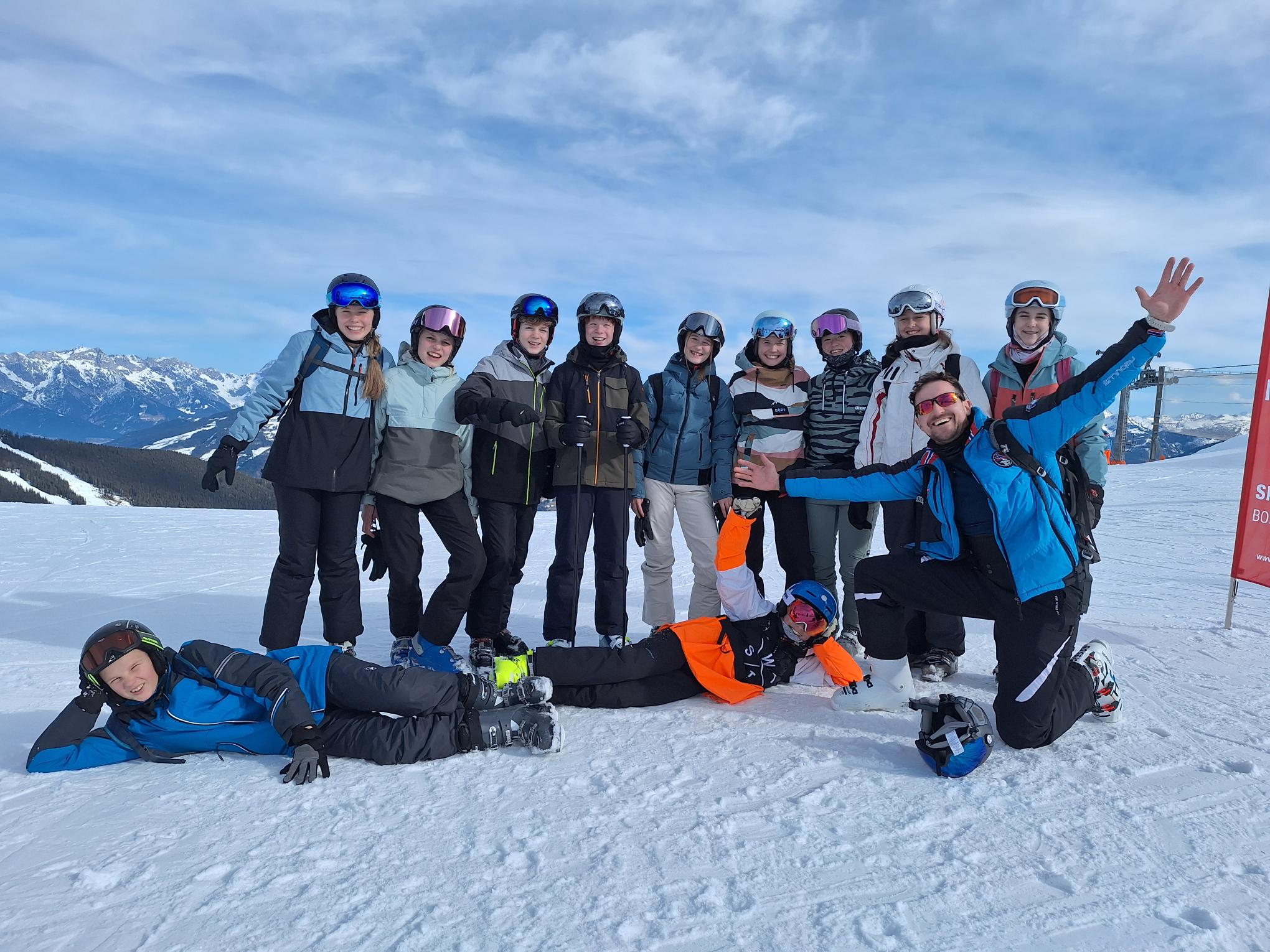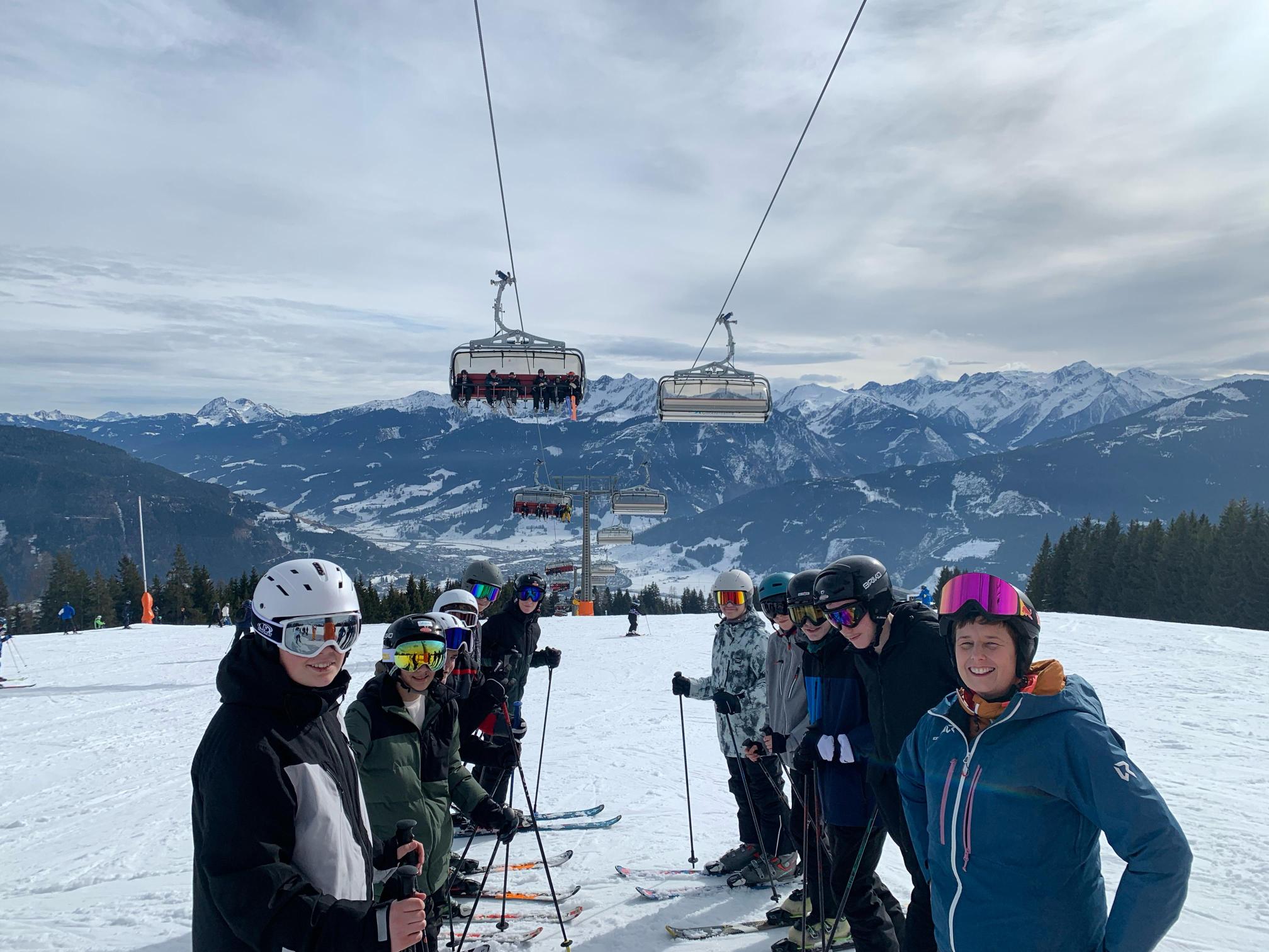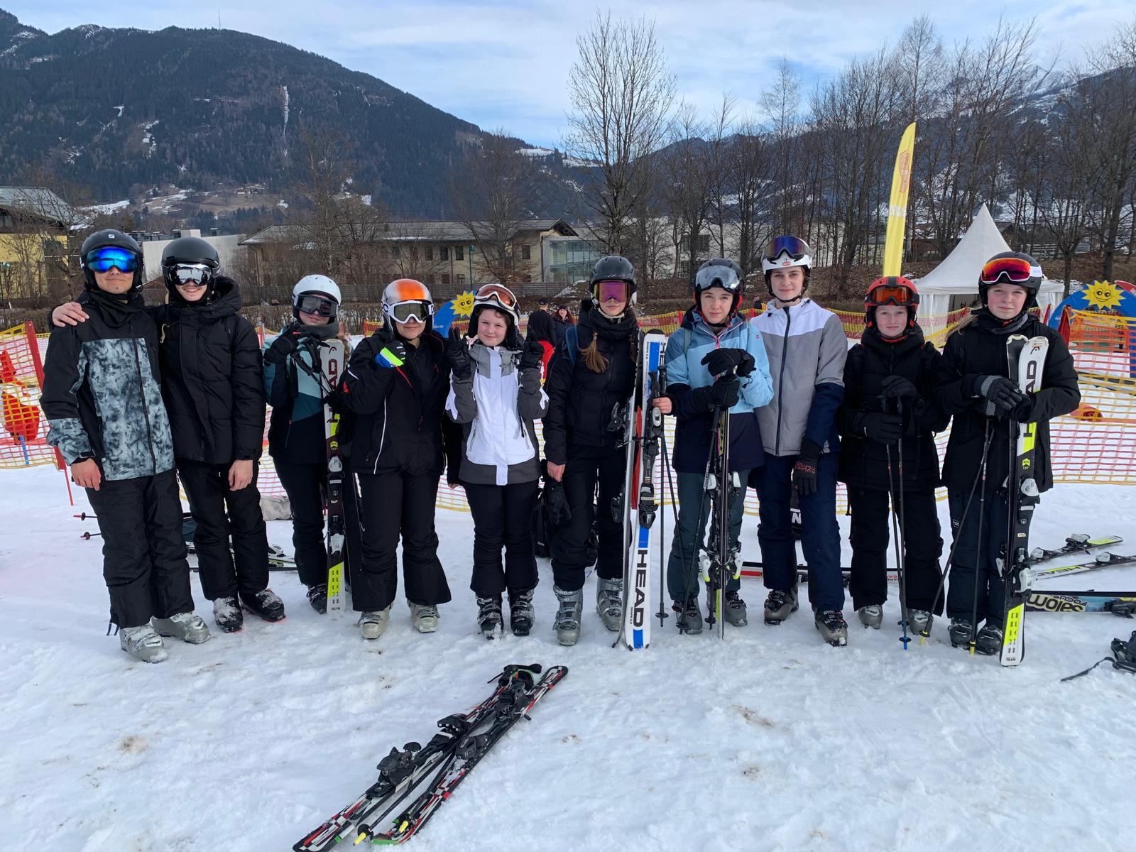 Die insgesamt 12 Skigruppen, darunter neun Anfänger-, zwei Fortgeschrittenengruppen und die „Profis“ konnten im Laufe der Woche ihre Fähigkeiten auf den Brettern sichtlich verbessern. Die Anfänger kamen am Ende der Woche galant jede blaue und auch einige rote Pisten herunter. Die Fortgeschrittenengruppen und die Profis wagten sich bis nach Saalbach und Leogang vor und erkundeten somit das weitreichende Skigebiet. In Saalbach konnte die derzeit stattfindende Ski-WM bestaunt werden, in Leogang gab es die wohl besten Kinderschnitzel des Skigebietes.