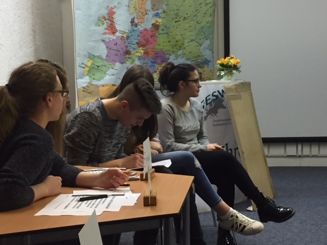 Von Donnerstag bis Samstag begab sich der Leistungskurs Sozialwissenschaften – begleitet von Herrn Leopold und dem Praxissemesterstudierenden Herrn Nießing – nach Vlotho in Ostwestfalen um sich intensiv mit den Chancen und aktuellen Problemen der Europäischen Union auseinanderzusetzen. Nach einem ersten Kennenlernen des „Gesamteuropäischen Studienwerkes“ als Gastgeber der Veranstaltung ging es in einem Mix aus interaktiven Lernarrangements und Informationen um Entstehung und Ziele der Europäischen Union mit ihren vielfältigen Mitgliedsländern. Den Kern des Seminars bildete die Vorbereitung, Durchführung und Evaluation eines Europäischen Konvents, in dem sich Vertreter der Mitgliedsländer, Europäische Kommission und Europäisches Parlament mit bedeutenden Fragen zur Zukunft der EU auseinandersetzten. Rund um die intensive Beschäftigung mit dem Thema Europa bat das „GESW“ auch die Möglichkeit in den Zeiten um das Programm herum das Debattieren zu üben. Auch wenn es dabei mal nicht um Europa, sondern um Werwölfe, Sprachkünste oder um das Interpretieren pantomimischer Bewegungsexperimente ging. Um viele Erkenntnisse und Erfahrungen (auch bezüglich einer „Currywurst Stufe 6“) reicher landeten die LKler am Samstagabend wieder müde und zufrieden in Siegen.