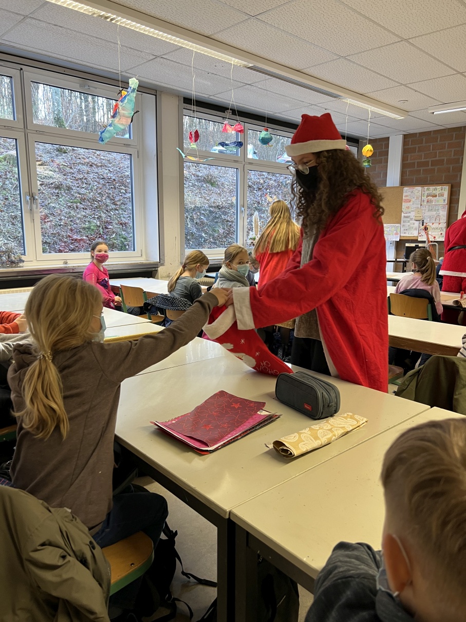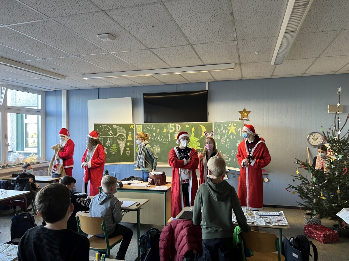 Ein weiteres Highlight des Nikolaus-Tages war für die Klassen der Erprobungsstufe die „Weihnachtsolympiade“, welche nach der gelungenen Premiere im vergangenen Jahr nun ein zweites Mal erfolgreich durchgeführt wurde. Die fünften und sechsten Klassen waren im Vorfeld aufgerufen worden, ihre Klassenräume möglichst weihnachtlich, kreativ und nachhaltig – getreu dem Motto „GyWi Goes Green“ zu dekorieren. Der Fantasie waren keine Grenzen gesetzt, sodass man z.B. in einigen Klassen wunderschöne Weihnachtssterne aus Klopapierrollen oder Weihnachtsengel aus alten Buchseiten bewundern konnte. Folglich war die SV-Jury vor eine schwierige Entscheidung gestellt, die am Ende zu Gunsten der Klasse 5B fiel, die sich über eine große Tasche mit Süßigkeiten freuen durfte.