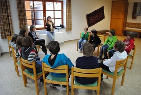 In einem kurzen theoretischen Teil behandelten die Kinder mithilfe der Schülersprecher Themen, die die SV-Arbeit betreffen, wie beispielsweise Streitschlichtung, Klassenrat u.ä. Besonders erfreut waren die Betreuer über die gute Beteiligung und das Interesse der Kinder. Nach einem wilden Spielnachmittag mit Fußball  (hauptsächlich Kids gegen die SV-JungsJ) und Kartenspielen konnten sich die Kinder am Abend bei dem Film "Ich unverbesserlich" ausruhen und auch einige Leckereien vernaschen. Die Nacht war vielleicht, besonders für die Lehrer, ein wenig kürzer als gewöhnlich, aber schließlich kamen alle zur Ruhe und wurden erst morgens beim Frühstück wieder richtig wach. Die hauseigene Lamafarm der Jugendherberge fanden alle super und hatten ihren Spaß dabei, die Lamas zu beobachten. Wieder einmal verging die Zeit viel zu zügig und so konnten nur noch ein paar kurze Spiele gemeinsam gespielt werden, bevor es auch schon wieder auf die Rückreise ging. Bei einer kurzen Feedbackrunde wurde eines deutlich: