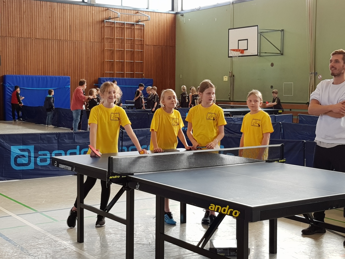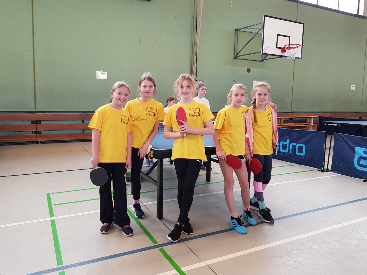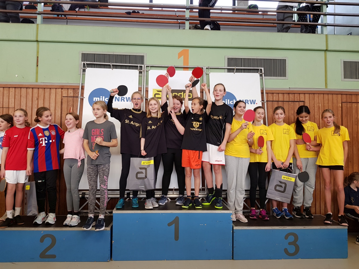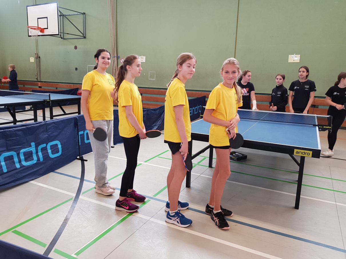 Alle Mannschaften unserer Schule konnten ihr erstes Spiel in der Gruppenphase gewinnen und somit fiel die anfängliche Nervosität von allen Spielerinnen und Spielern ab und die Sicherheit gewann Überhand. Alle Mannschaften (Mädchen und Jungen der 5a, Mädchen der 6e und Jungen der 6b) überstanden als Erst- oder Zweitplazierte die Gruppenphase und waren somit für Endrunde qualifiziert. Die Jungen der 5a verloren leider im Viertelfinale gegen den späteren Sieger aus Nümbrecht, hatten aber in der Gruppenphase dieses Spiel gewonnen. Die Mädchen der 5a waren erfolgreicher. Sie kamen überraschend bis ins Endspiel, verloren aber hier leider gegen  die Mädchen vom St. Angela Gymnasium aus Wipperfürth. Ähnlich erging es den Mädchen der 6e: sie spielten im Halbfinale gegen die Mädchen vom St. Angela Gymnasium und gingen auch hier als Verlierer von der Platte, weil sie einfach zu aufgeregt waren. Im anschließenden Spiel um Platz 3 war alles wie vor der Endrundenteilnahme: sie gewannen souverän und kamen somit auch noch aufs Treppchen.