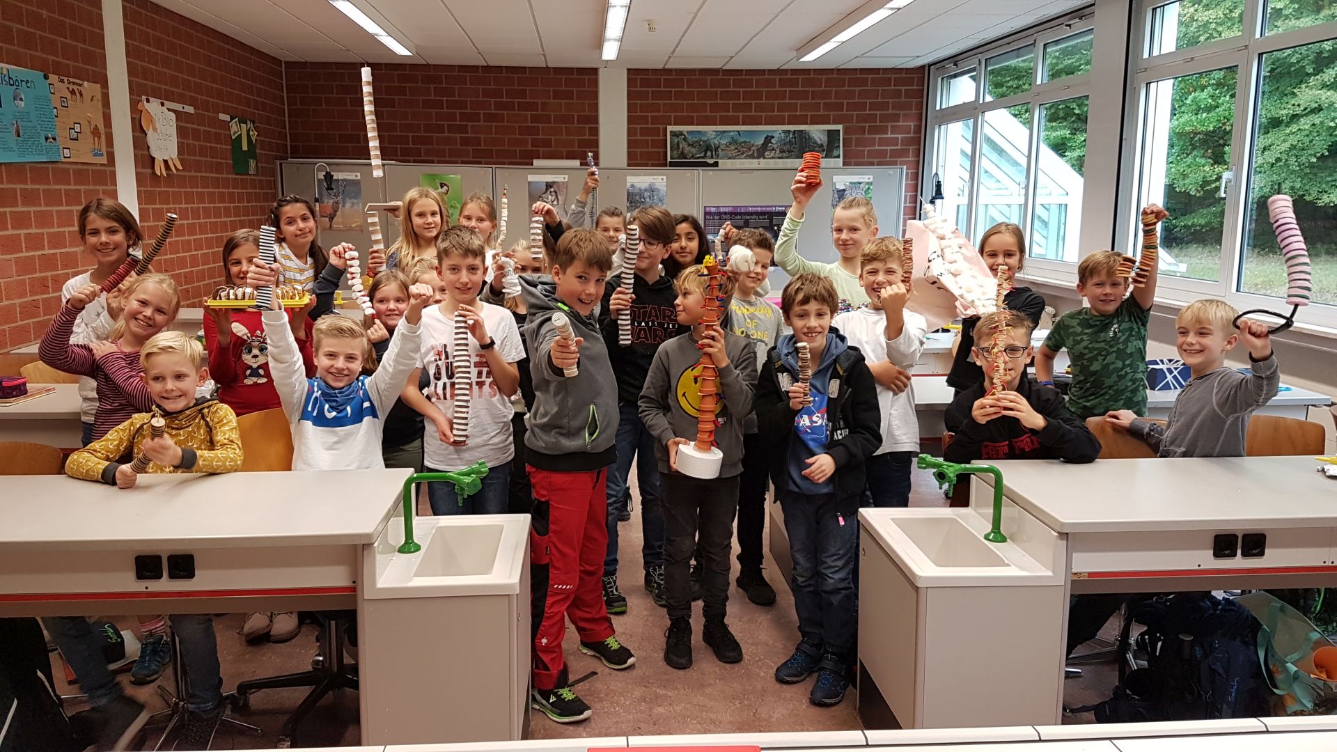 Mit dieser Frage beschäftigte sich die Klasse 5b im Biologieunterricht. Dazu bastelten die Schüler Modelle, mit deren Hilfe der Aufbau der Wirbelsäule erforscht werden konnte. Die tollen Ergebnisse präsentierten die Schüler mit Stolz. Neben Modellen aus Holzscheiben und kleinen Blumentöpfen fanden sich auch essbare Materialien, wie Marshmallows oder Weingummis, die von den Schülern zum Basteln genutzt wurden. Die entstandenen, süßen Versuchungen wurden nach der Stunde mit Begeisterung verspeist.